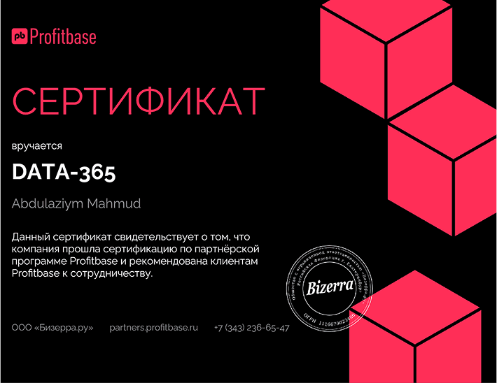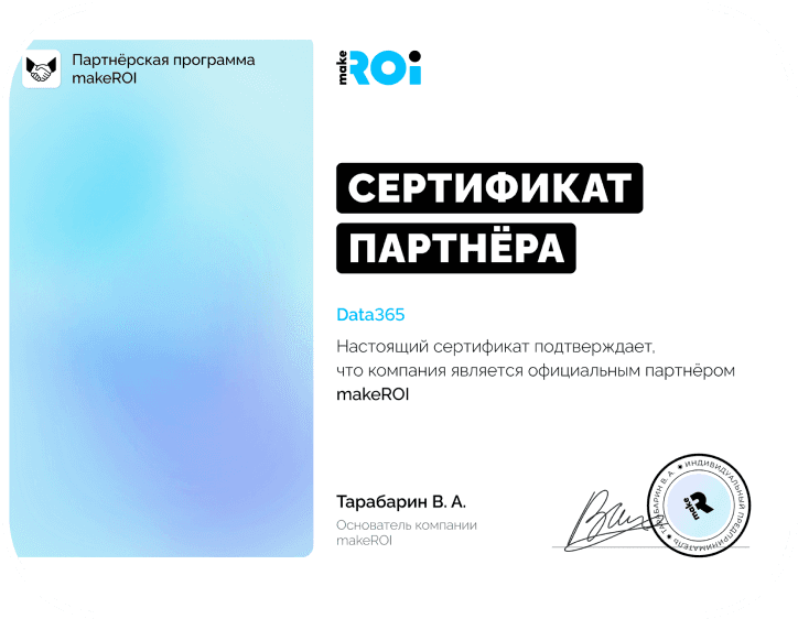 Сертификат партнёрства с MakeROI.MakeROI bilan hamkorlik sertifikati